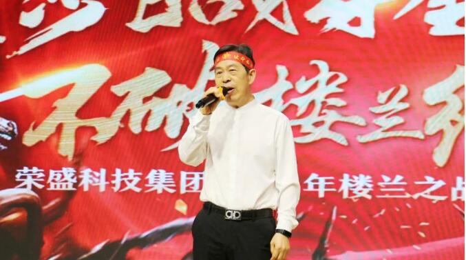 接著,在一片掌聲和歡呼聲的簇擁之下,本次大戰“總司令”——集團董事長楚總上臺作大戰總動員,吹響了本次「樓蘭之戰」沖鋒的號角。楚總首先深情回顧了榮盛十年的發展歷程,強調了一切勝利的源頭來自于榮盛集團堅韌不拔的企業精神。他將本次市場戰役比作「樓蘭之戰」,號召全體員工要以“不破樓蘭終不還”的決心,攻克市場高地。