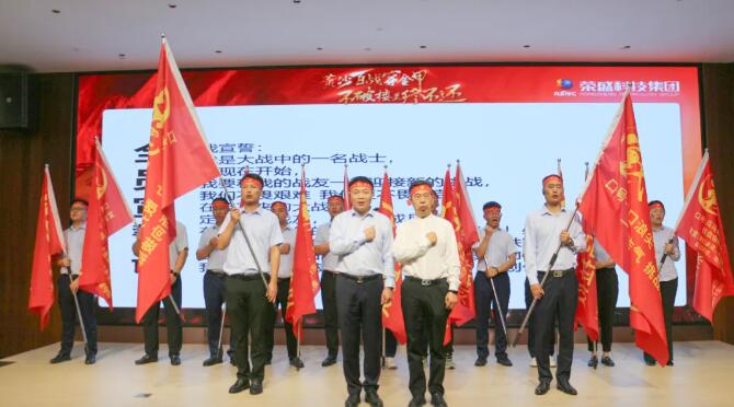 旌旗迎風意氣生,聞鼓而戰勇者勝。在集團所有人的見證下,軍團總司令——集團董事長楚總分別為各營銷戰隊進行授旗。一面面旗幟印證斗志與干勁,一聲聲口號鏗鏘有力,榮盛營銷鐵軍懷揣著必勝的雄心與斗志,奏響了奮勇爭先的強音。