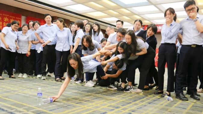 【勇創新高】環節,主要內容是計時30分鐘的水瓶挑戰。一聲哨響之后,各個戰隊立即展開智力和團隊協作力的大比拼,一次次挑戰自我,一次次超越自我,在嘗試中不斷打開思維,開放心態,學習更優模式以期實現目標。同時大家還能迅速找到自己的優劣勢,揚長避短,團結協作,終發揮出的團隊力量,達成各自隊伍的目標。